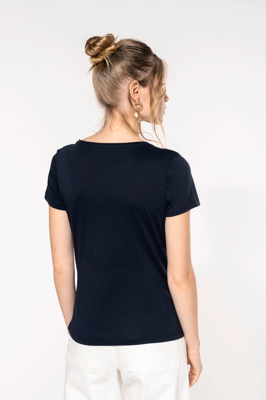 Bio dames-t-shirt kraag met onafgewerkte rand korte mouwen