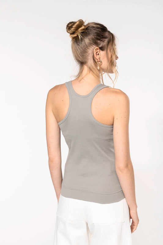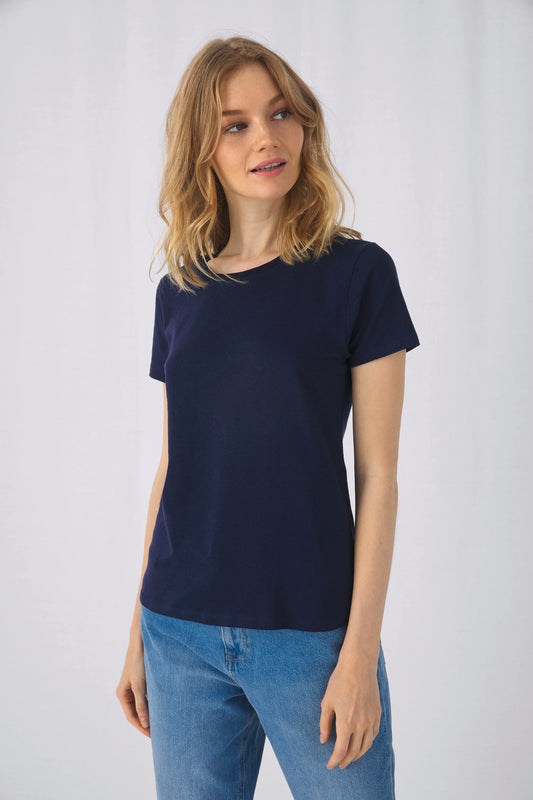 Bio dames-t-shirt kraag met onafgewerkte rand korte mouwen