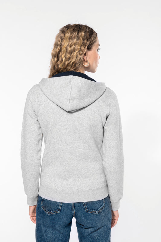 Damessweater met rits en capuchon in contrasterende kleur