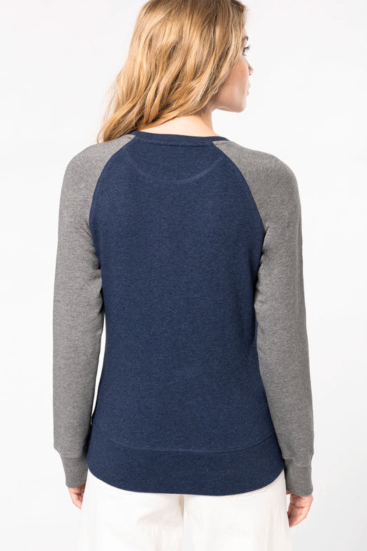 Tweekleurige damessweater BIO ronde hals raglanmouwen