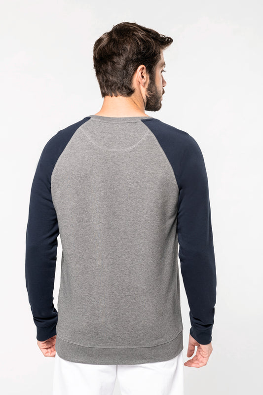 Tweekleurige herensweater BIO ronde hals raglanmouwen