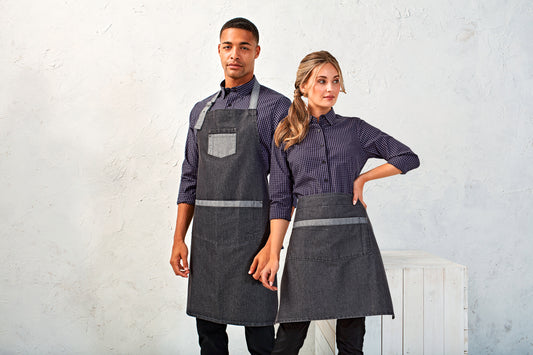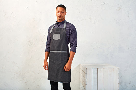 Domain - Contrast denim bib apron