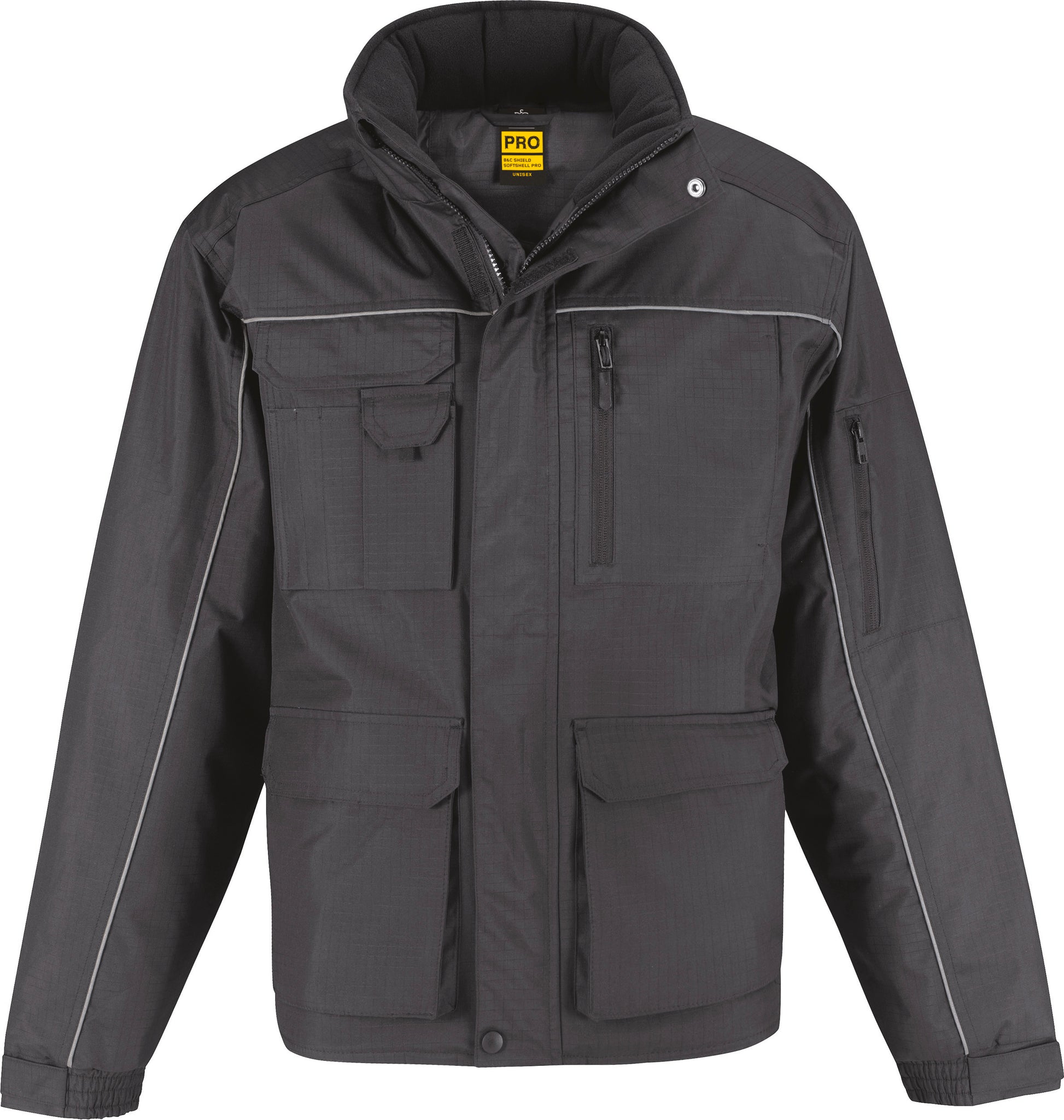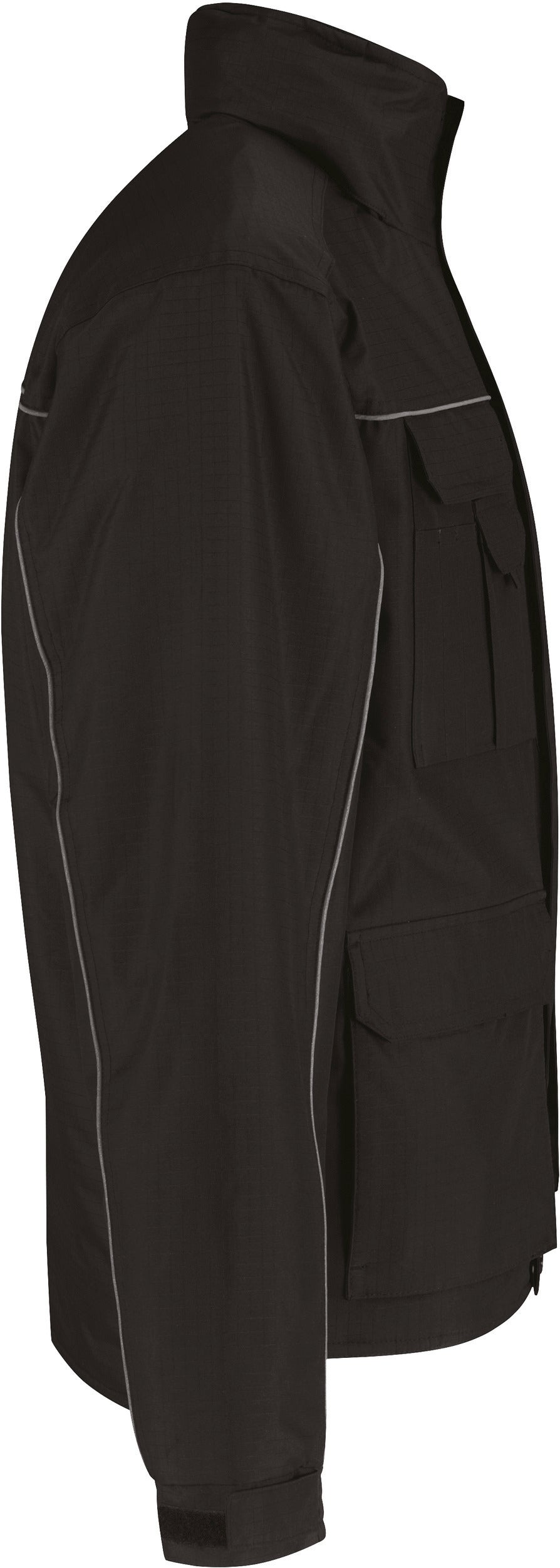 Buitenkant: 100% polyester ripstop, waterafstotend (5000 mm) en winddicht. Binnenkant: 100% gewatteerde polyester voering (200g/m≤). Lang achterpand. Opstaande kraag met microfleece en kinbeschermer. Stormoverslag. Reflecterende bies op de voor-en achterkant. Ergonomische capuchon met voering en elastisch aanrijgkoord met 2 stoppers verwerkt in de kraag. Verstelbare mouwuiteinden. Afwerking met dubbele stiksels op de schouders, armsgaten en de zakken ter hoogte van de taille. 12 multifunctionele zakken ( meerdere grote zakken met overslag, borstzak met ritssluiting, zak voor de smartphone aan de buitenkant, 3 penzakken en 2 voorzakken met dubbele insteek, zijdelingse toegang in fleece om de handen warm te houden en overslag, 1 opgenaaide zak met overslag voor de portefeuille aan de binnenkant en 1 zak met ritssluiting op de mouw. Drukkersrits.Wasgoed bestand tegen 30 C Normaal programma|Niet bleken|Niet drogen in de droger|Niet strijken. Geen stoom gebruiken|Chemische reiniging verboden. CGJUC41