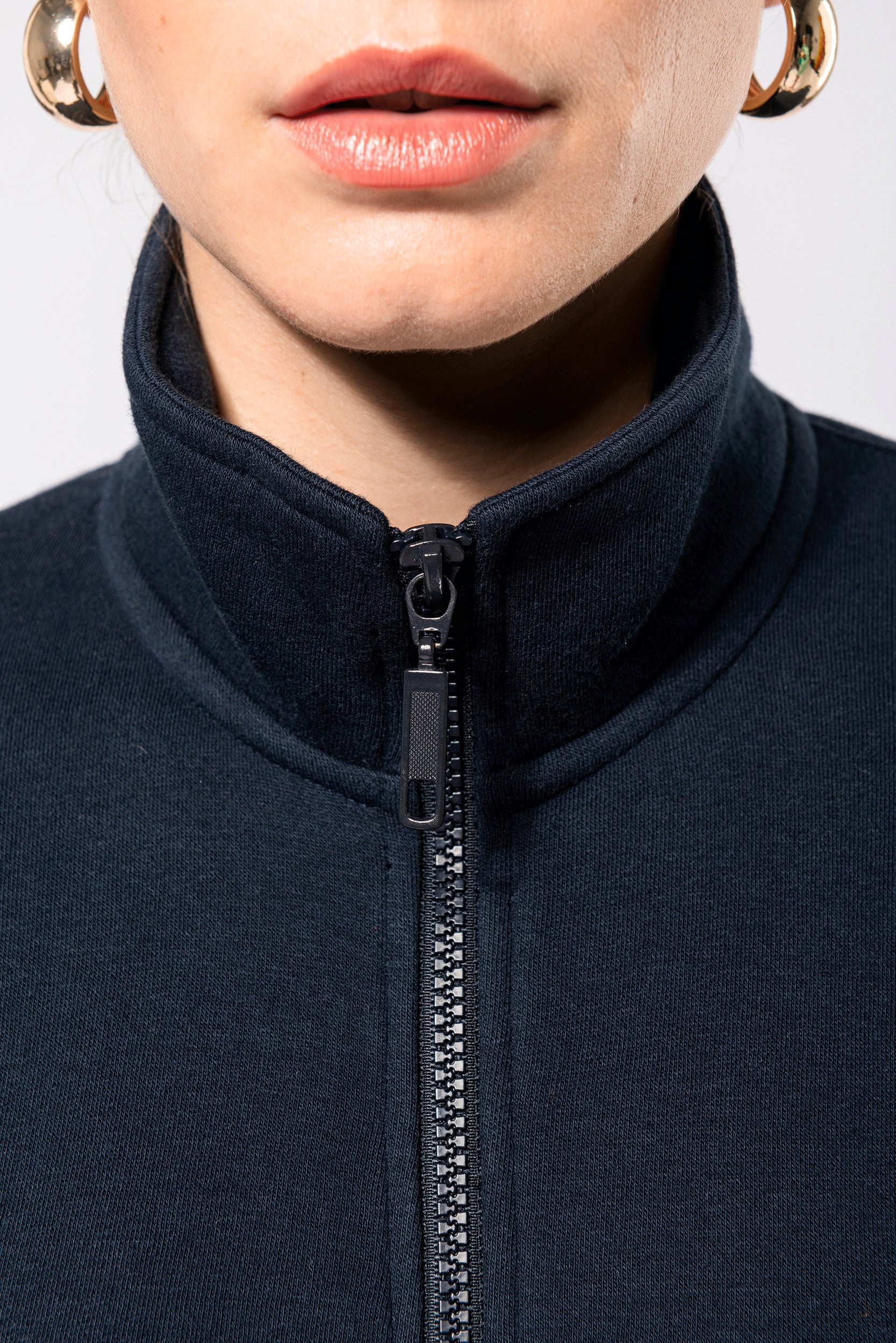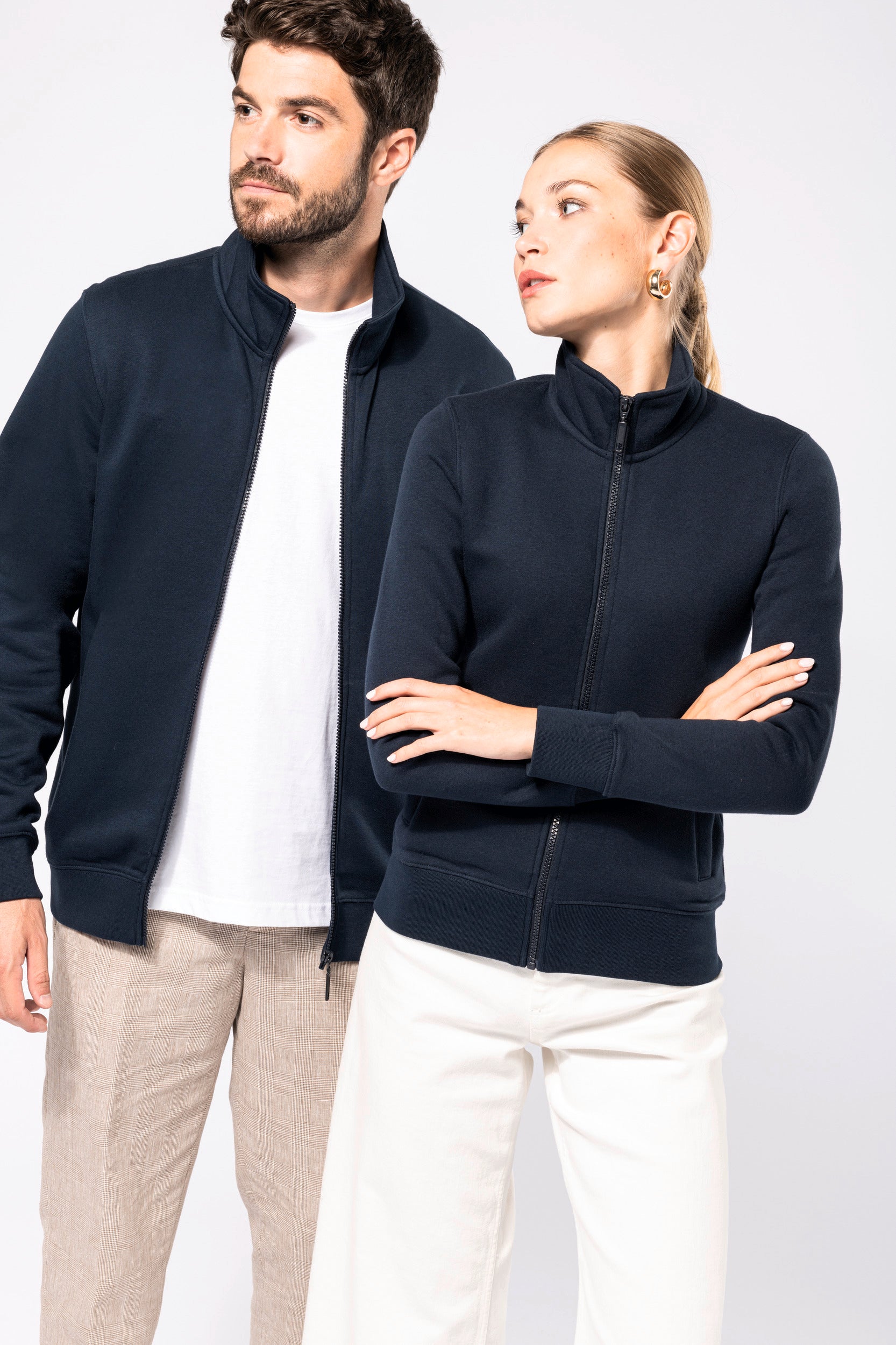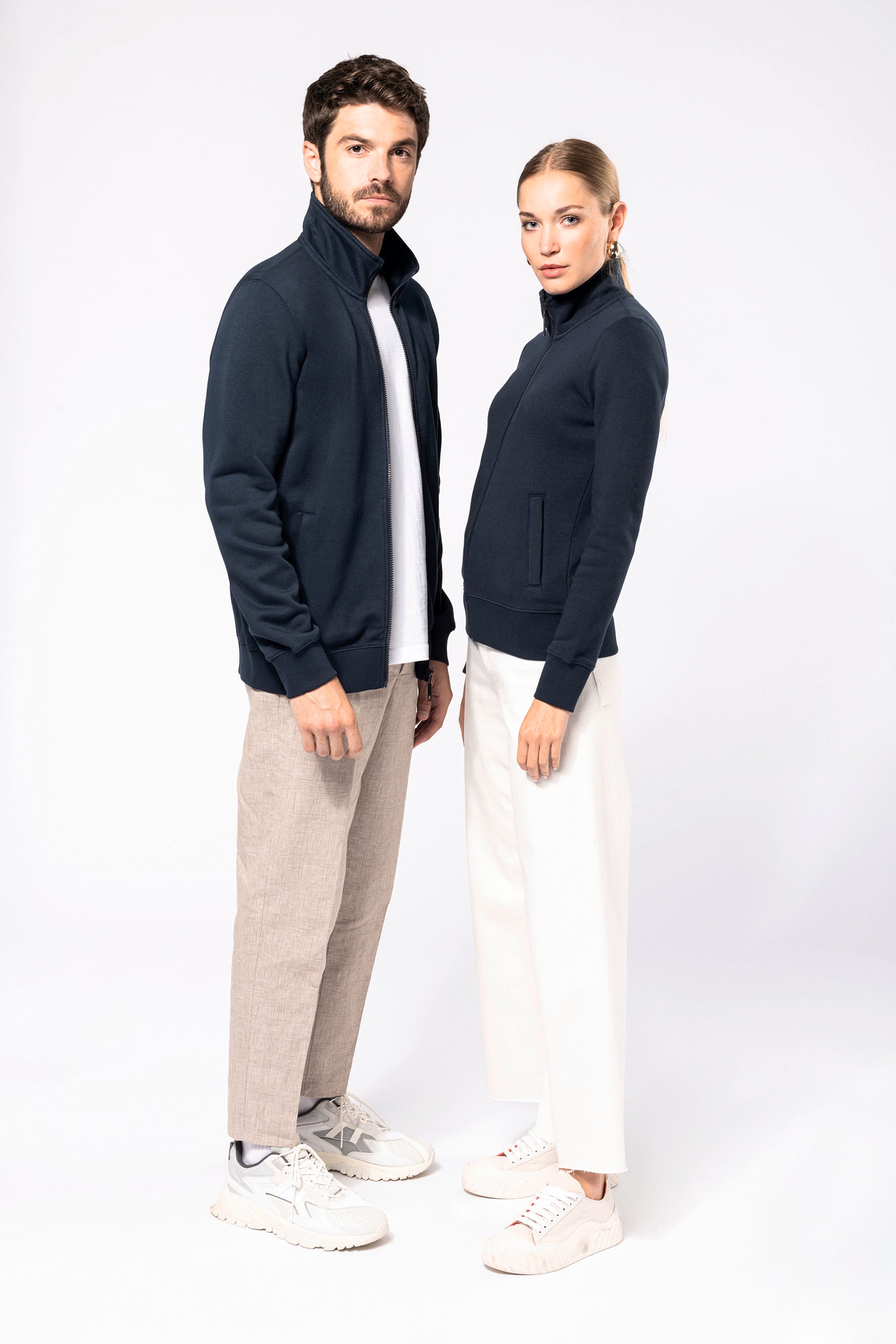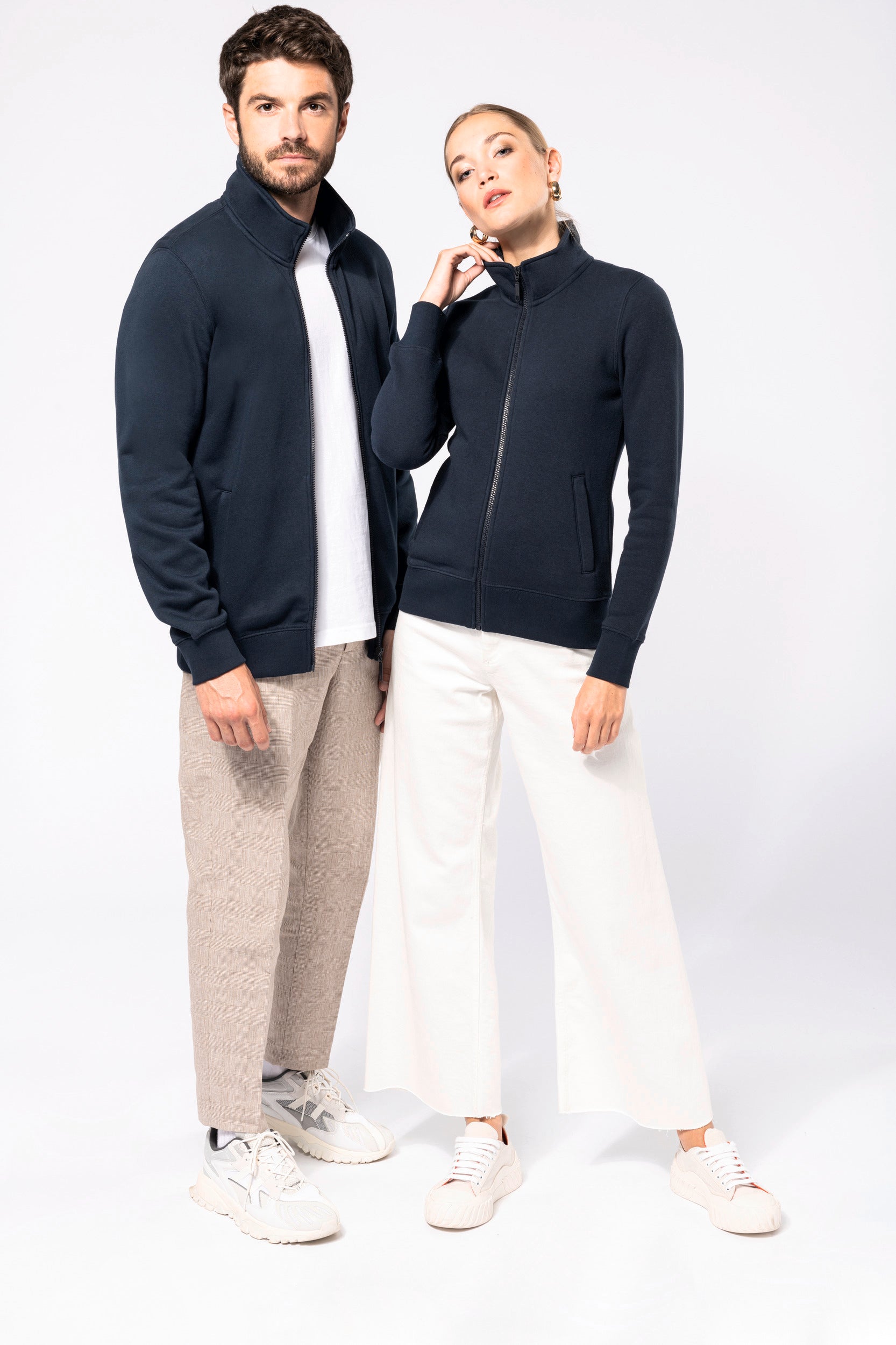 80% katoen / 20% polyester. LSF-behandeling (Low Shrinkage Fleece: voorgekrompen fleece). Aan de binnenkant geborsteld fleece 3 draden van gekamd katoen. Fitted pasvorm. Rechte mouwen. Opstaande kraag. Ritssluiting in toon op toon plastic. 2 ritszakken en biesjes opzij. Halvemaanvormige afwerking aan de halsopening op de achterkant, voor eenvoudige personalisatie van het merk aan de binnenkant van de kraag. Afwerking van 1x1 ribboord aan de mouwuiteinden en onderaan. Tear-away merklabel. Gecertificeerd STANDARD 100 by OEKO-TEX CQ1007/7, IFTH.K4011