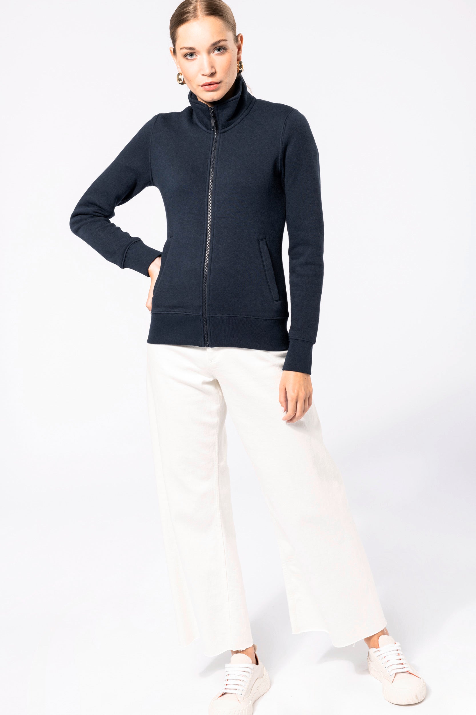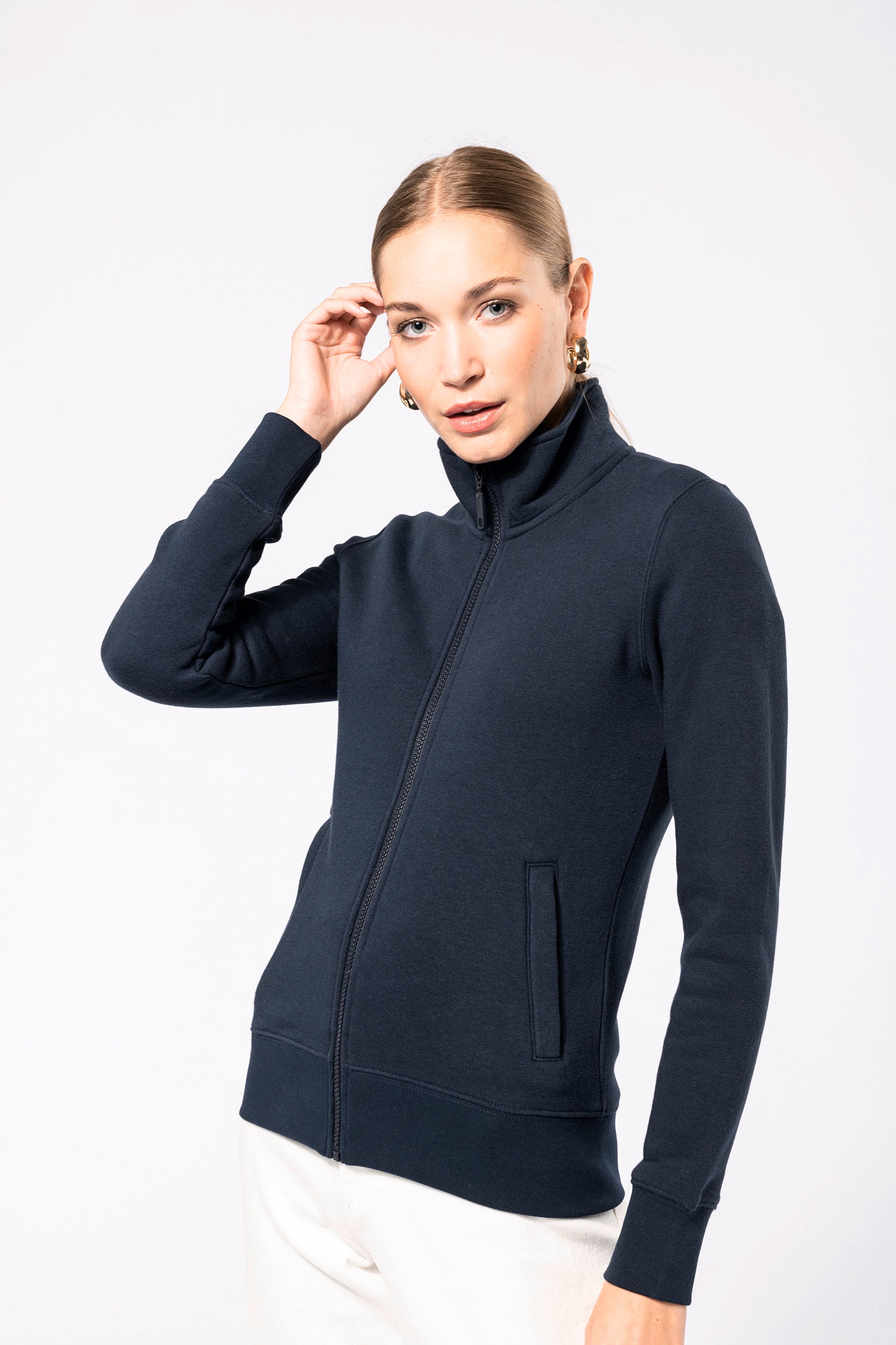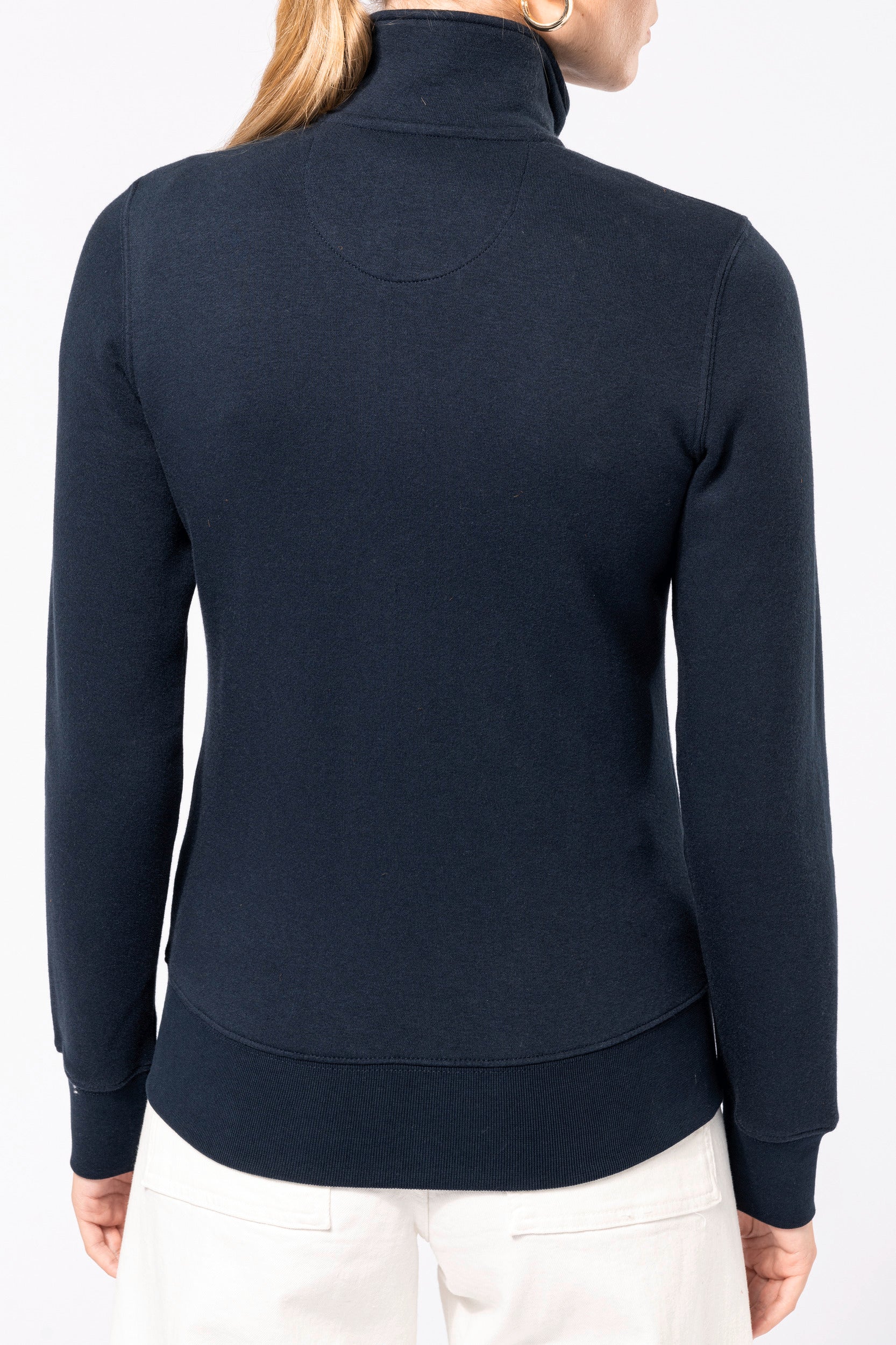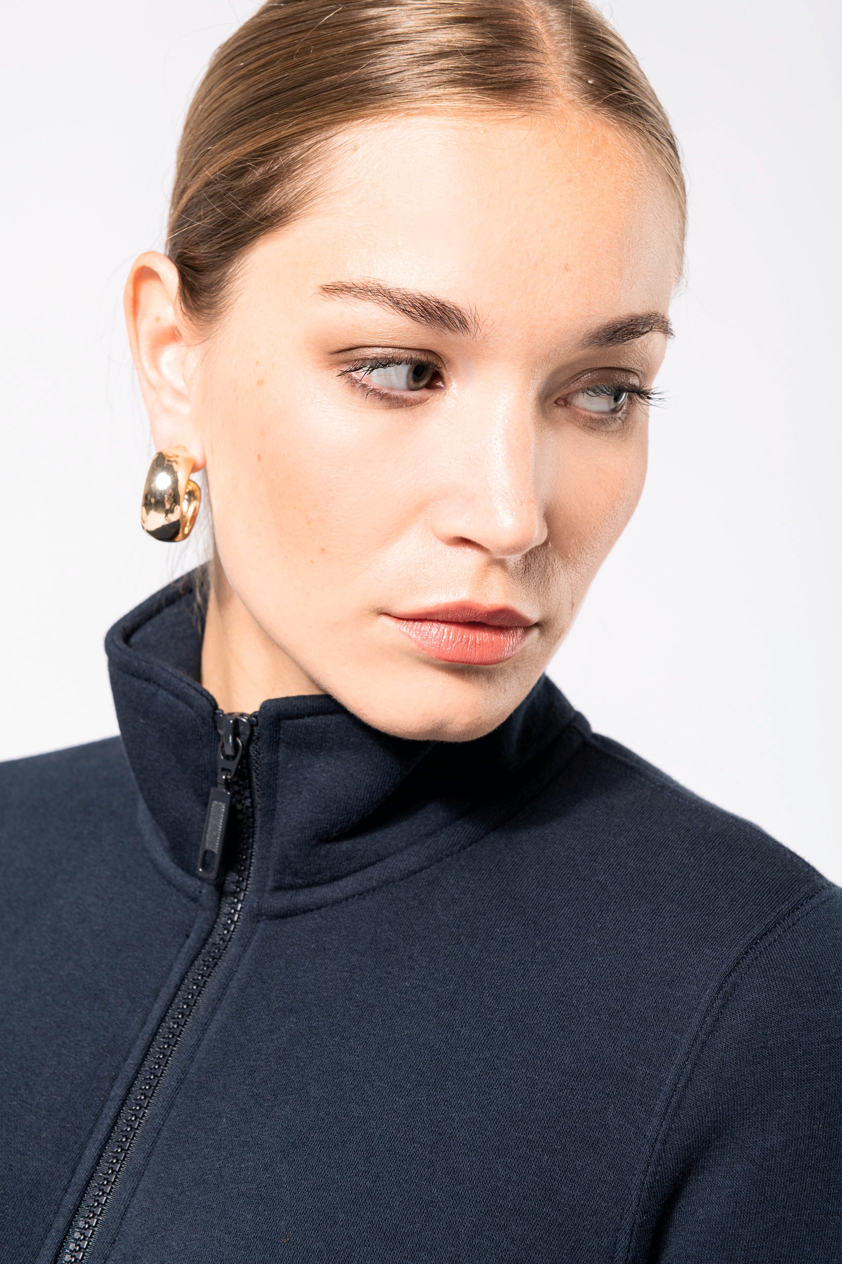 80% katoen / 20% polyester. LSF-behandeling (Low Shrinkage Fleece: voorgekrompen fleece). Aan de binnenkant geborsteld fleece 3 draden van gekamd katoen. Fitted pasvorm. Rechte mouwen. Opstaande kraag. Ritssluiting in toon op toon plastic. 2 ritszakken en biesjes opzij. Halvemaanvormige afwerking aan de halsopening op de achterkant, voor eenvoudige personalisatie van het merk aan de binnenkant van de kraag. Afwerking van 1x1 ribboord aan de mouwuiteinden en onderaan. Tear-away merklabel. Gecertificeerd STANDARD 100 by OEKO-TEX CQ1007/7, IFTH.K4011