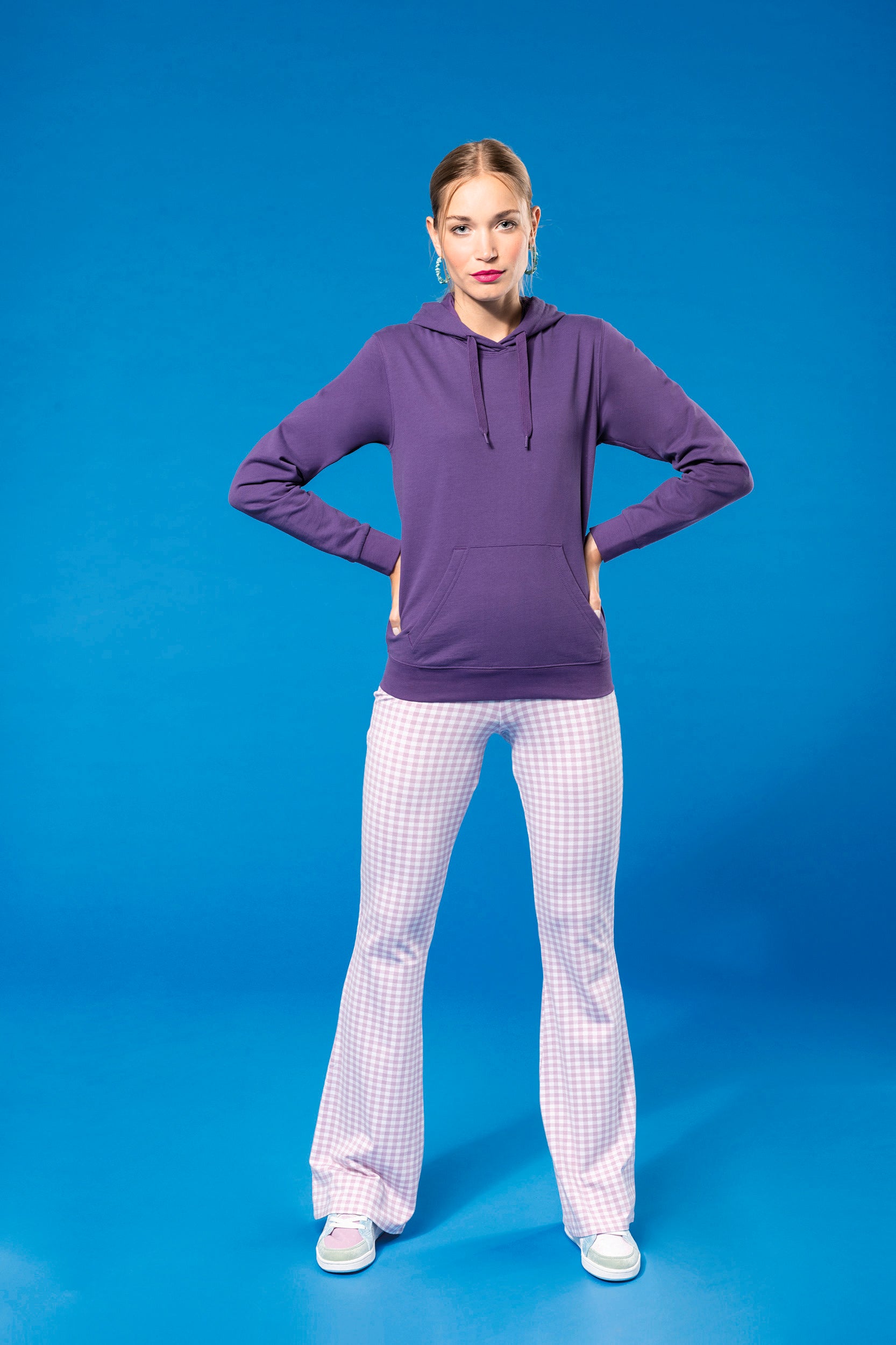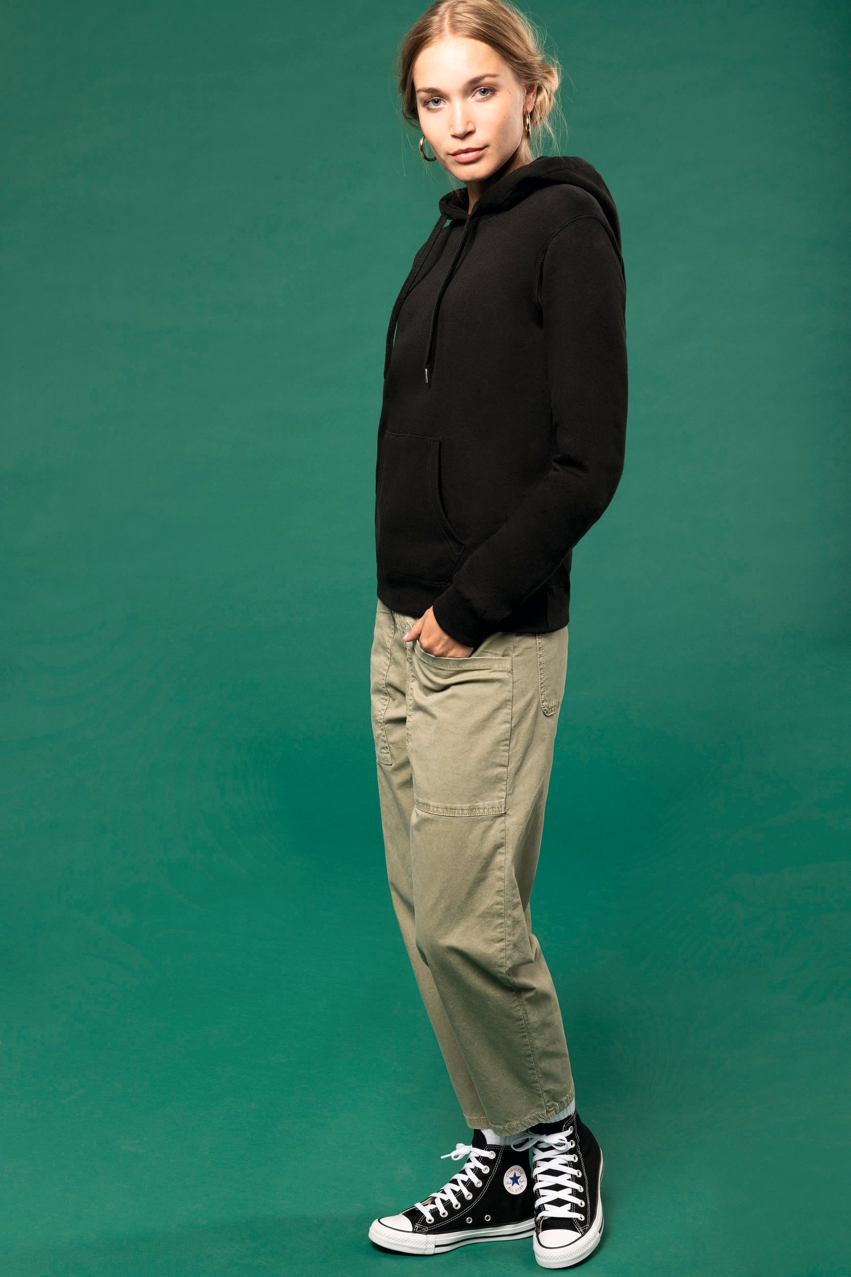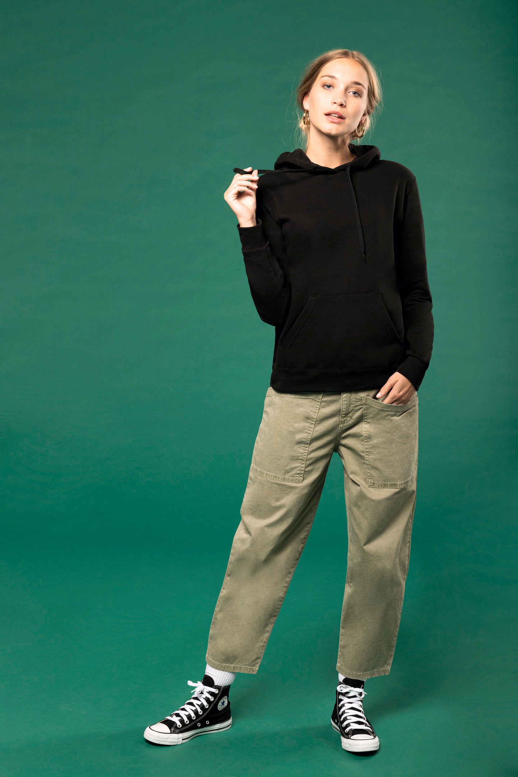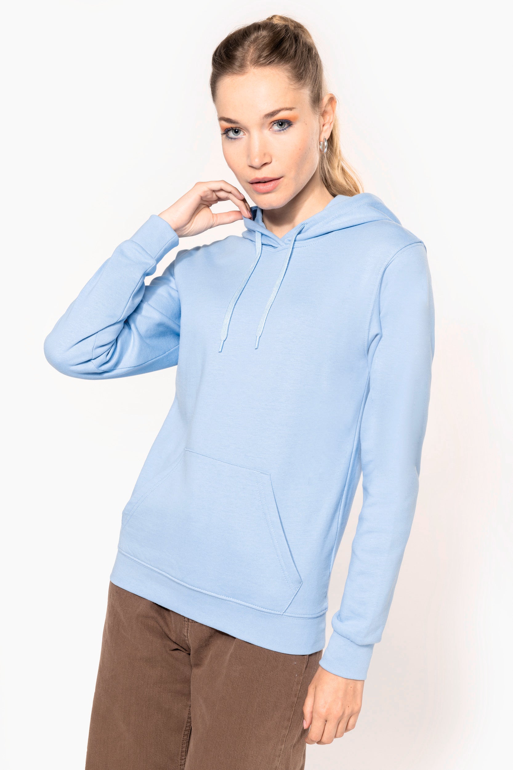80% katoen / 20% polyester. Geborsteld fleece aan de binnenkant. Ingezette mouwen. Gevoerde capuchon met toon op toon aanrijgkoordjes. Kangoeroezakken. Ribboord aan mouwuiteinden en aan de onderkant. Gecertificeerd STANDARD 100 by OEKO-TEX CQ1007/7, IFTH.K473