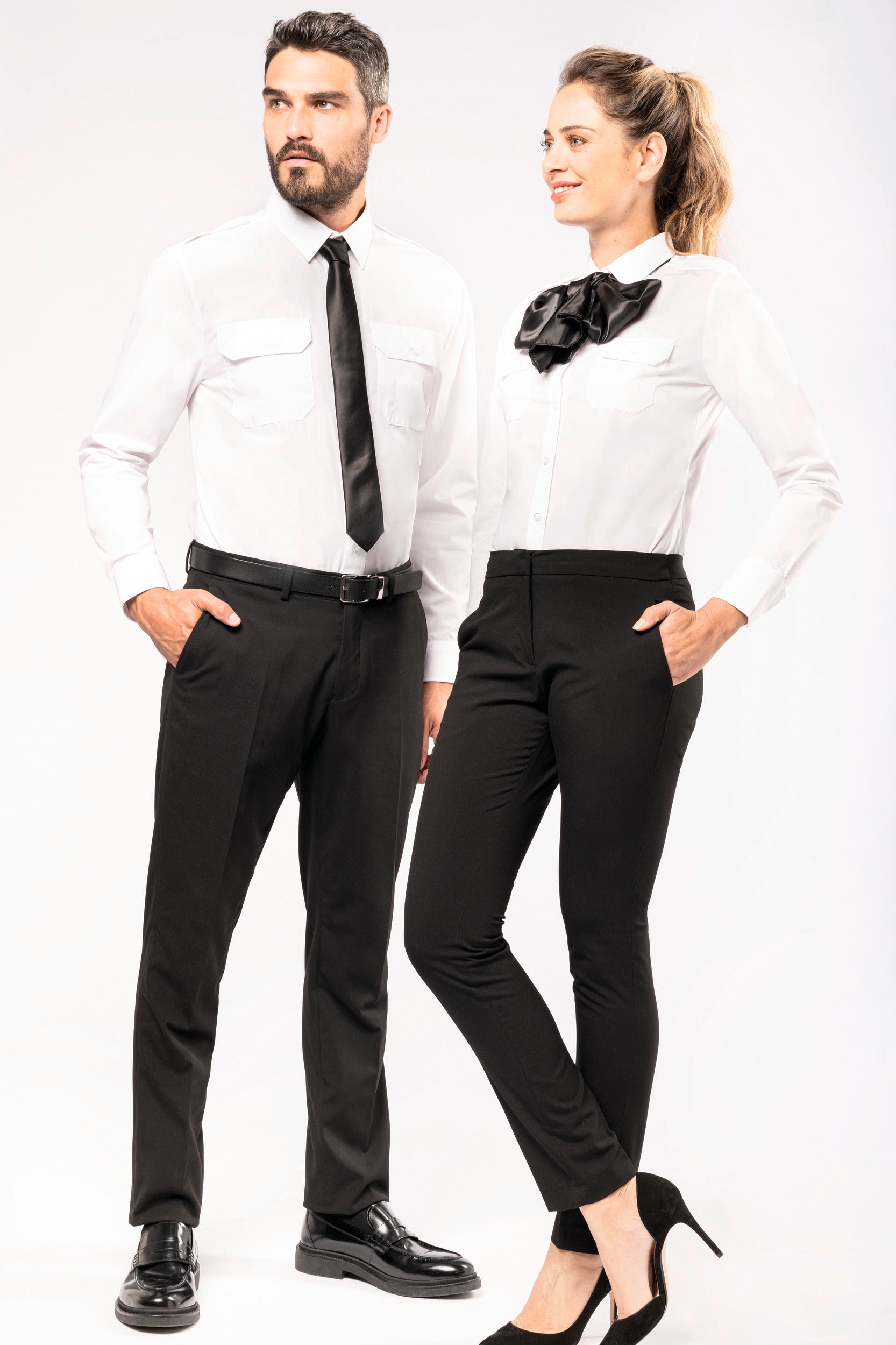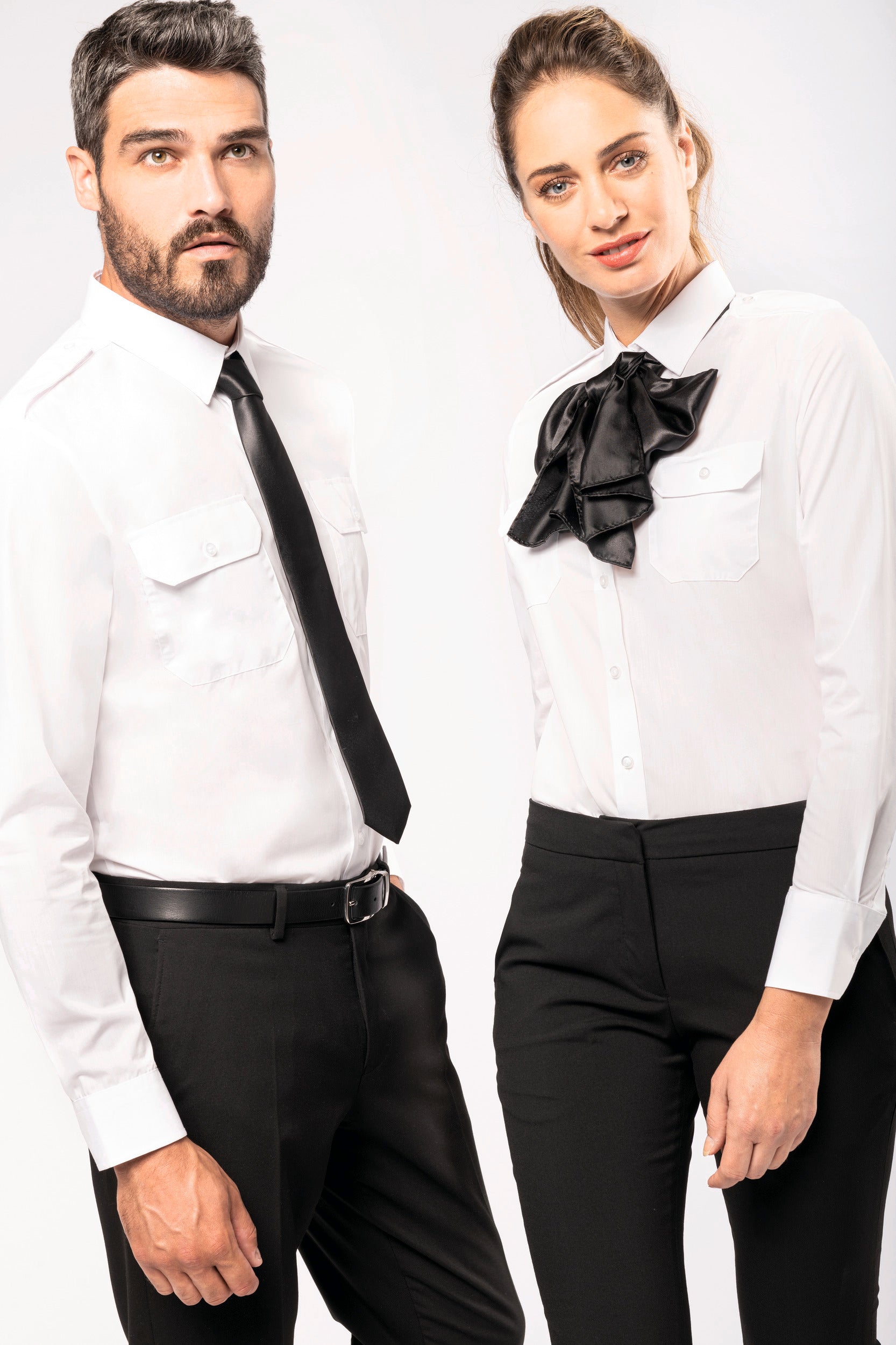 65% polyester / 35% popelinekatoen. Gemakkelijk in onderhoud (EasyCare-behandeling). Toon-op-toon knopen. 2 borstzakken met klep, waarvan aan de linkerkant een met plaats voor een pen. Knooplijst op de schouders om galons te bevestigen (epauletten niet meegeleverd). Regelbare knoopmanchetten. Gecertificeerd STANDARD 100 by OEKO-TEX CQ 1007/7, IFTH. K506