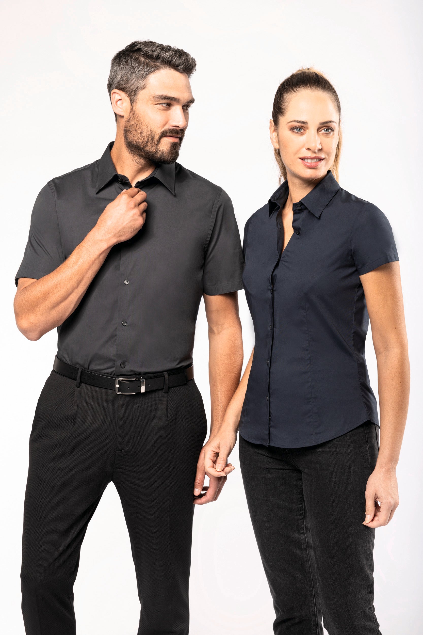 97% katoen / 3% elasthan. Getailleerd overhemd en comfortabele pasvorm. Kraag zonder knopen. Toon op toon knopen. Plooitjes aan de achter- en zijkant. Mouwuiteinden omgezoomd. 1 extra knoop. Afgeronde onderkant. Gecertificeerd STANDARD 100 by OEKO-TEX N CQ 1007/8, IFTH.K532