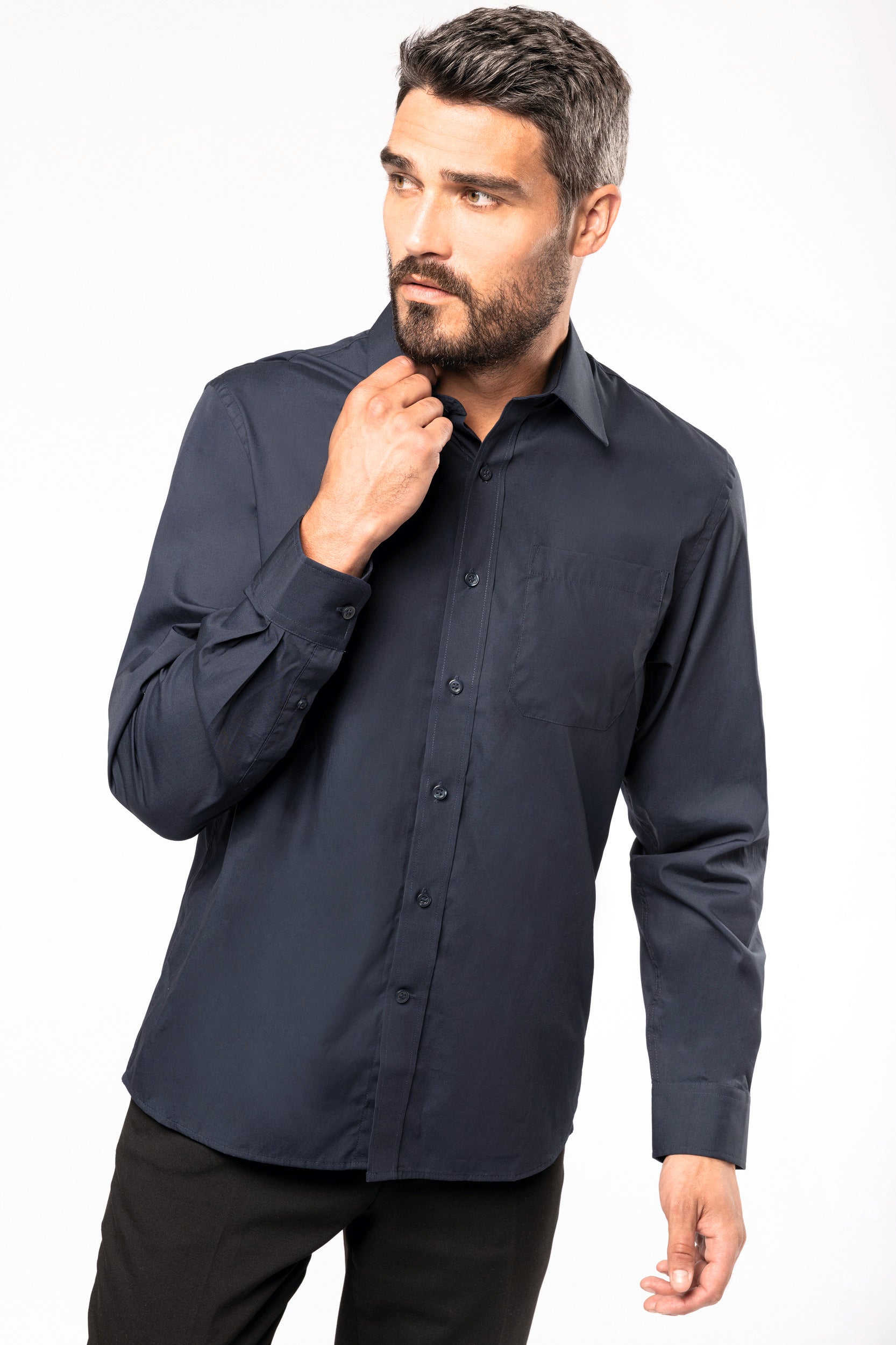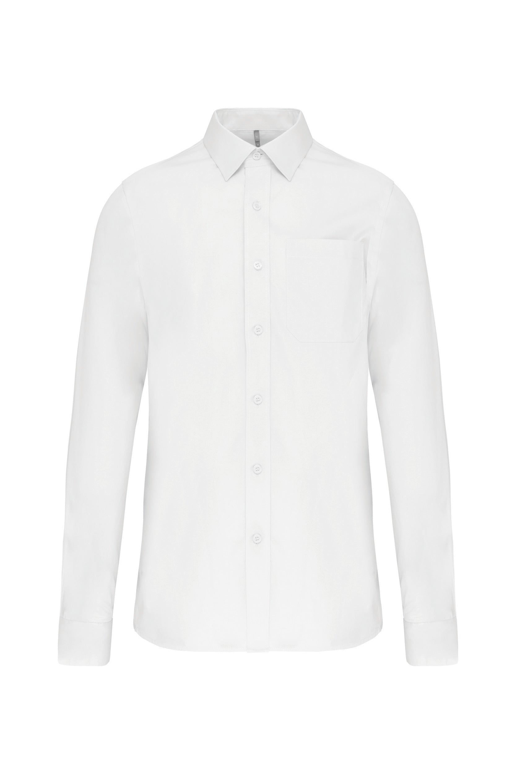 100% popeline katoen. Gemakkelijk in onderhoud (Easy Care). Verstevigde kraag met baleinen. Toon op toon knopen. Borstzakje. Dubbel inzetstuk op de rug en 2 plooitjes. Afgewerkt met dubbele vouwnaden. Verstelbare mouwen. 2 extra knopen. Afgerond boord aan de onderkant. Gecertificeerd STANDARD 100 by OEKO-TEX CQ1007/7, IFTH. K541