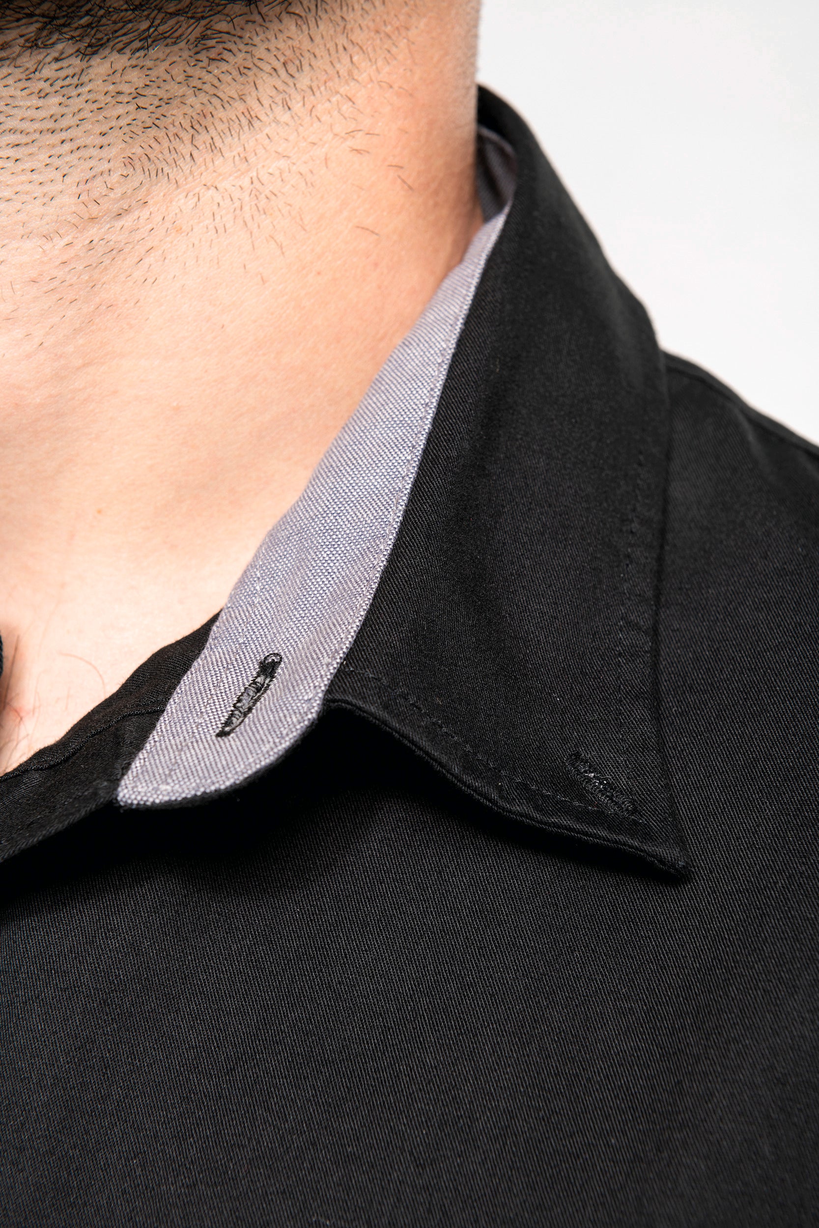 100% katoen. Fluweelachtige twillstof. Comfortabele snit. Kraagpunt met knoop. Toon-op-toon knopen. Borstzak aan de linkerkant. Binnenkant kraagstaander in contrasterende kleur Oxford silver. Achterkant met 2 ruimteplooien en gevoerd inzetstuk. Afgewerkt met omgeslagen naden. Extra knoop. Gecertificeerd STANDARD 100 by OEKO-TEX CQ1007/8, IFTH. K587