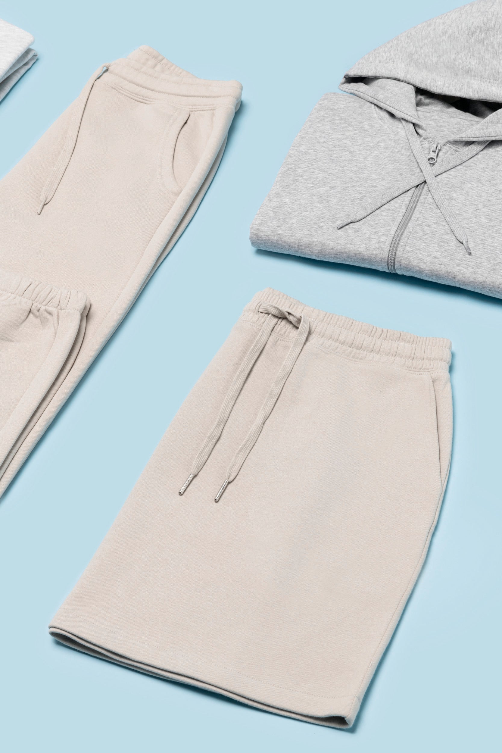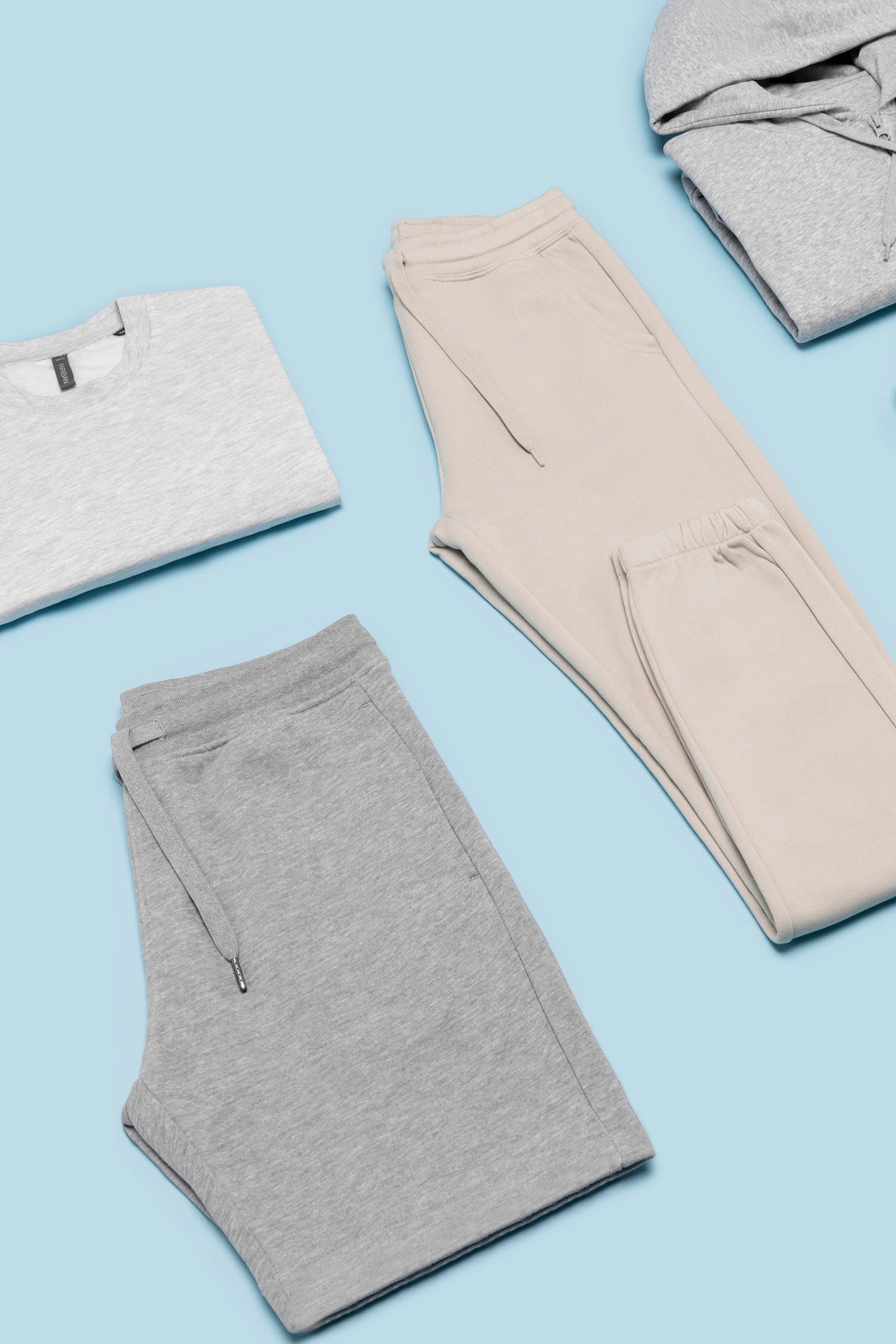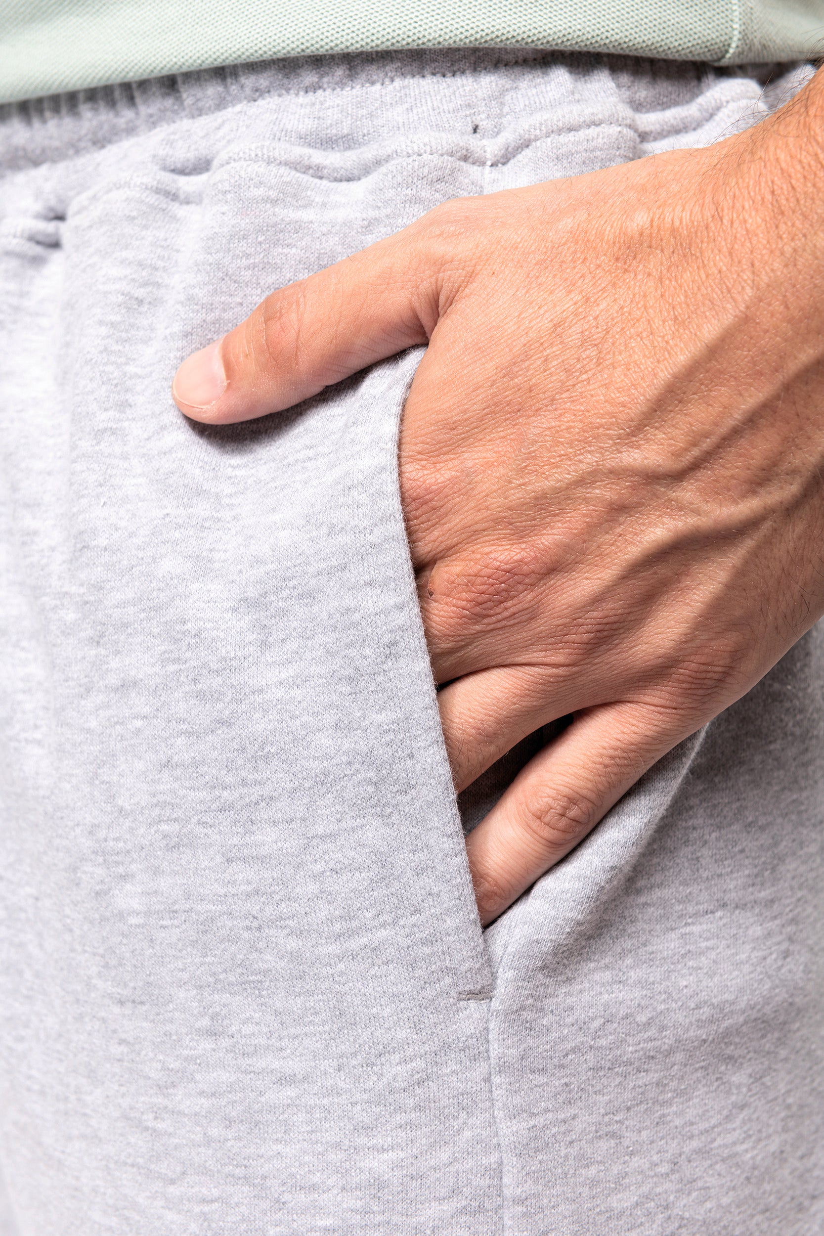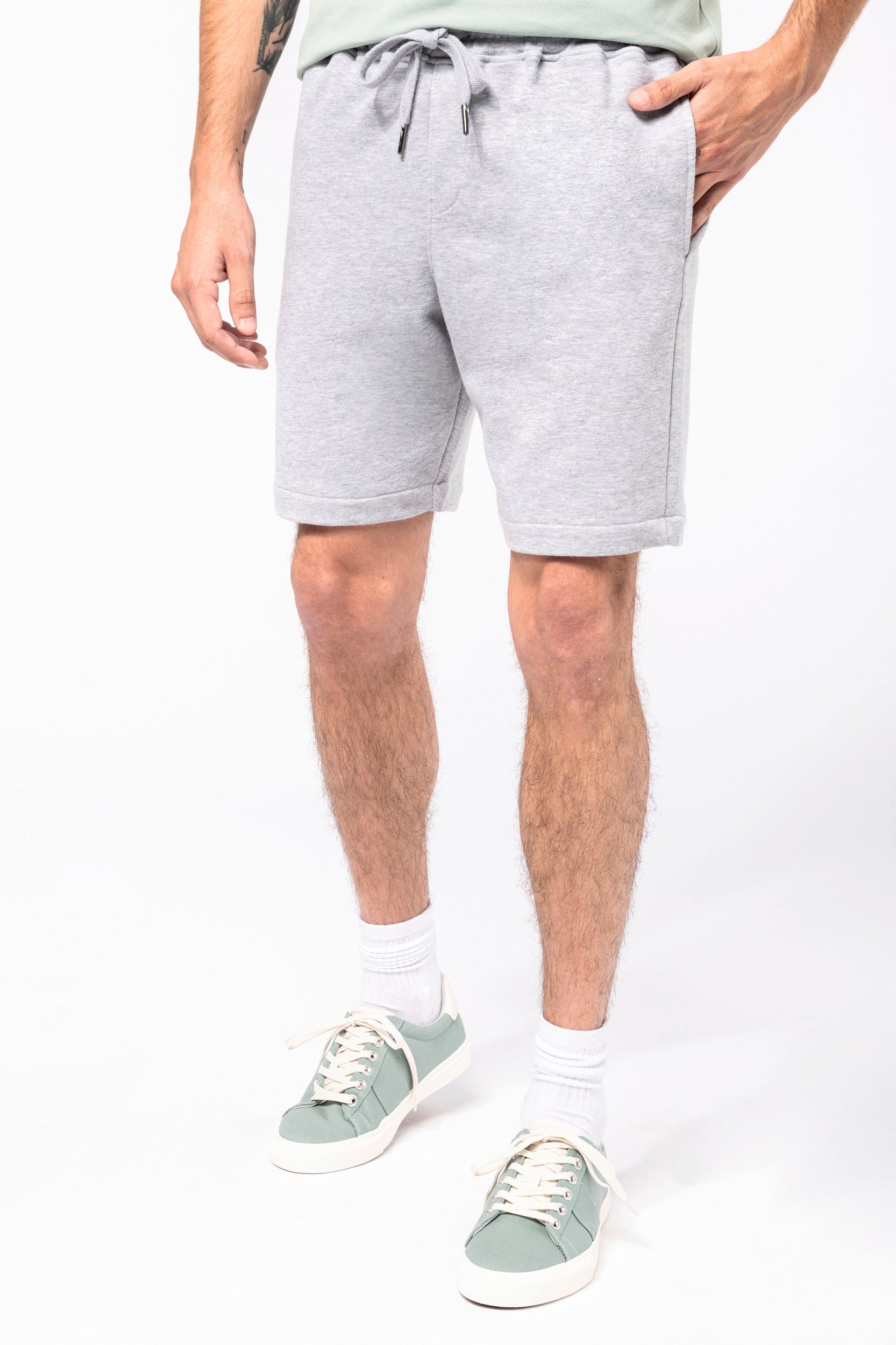 80% biologisch katoen / 20% gerecycleerd polyester post-consumer. Oxford Grey 75% biologisch katoen / 25% gerecycleerd polyester post-consumer. Fleece french terry LST (Low Shrinkage Terry). Stof: enzymgewassen. 2 zijzakken en 1 opgezette achterzak. Elastische tailleband in 1x1 ribboord met platte, toon-op-toon aanrijgkoordjes met metalen uiteinde. Geen merklabel, maar enkel een maatlabel voor eenvoudige personalisatie. Gecertificeerd STANDARD 100 by OEKO-TEX CQ1007/7, IFTH. K7575